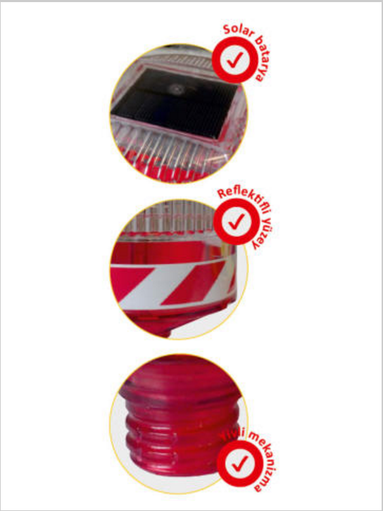 Reflektif malzeme sayesinde gün içinde de uyarı