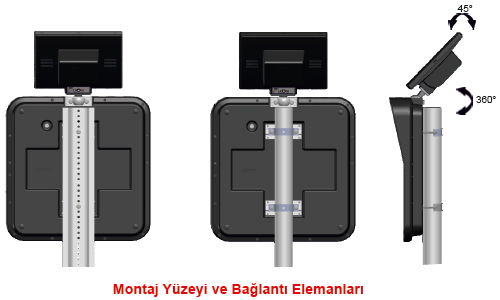 Güneş paneli topuz şeklindeki metal mafsal sayesinde kendi ekseninde 360 derece ve öne-arkaya ve sağa sola 45 derece yatabilme özelliğine sahjptir