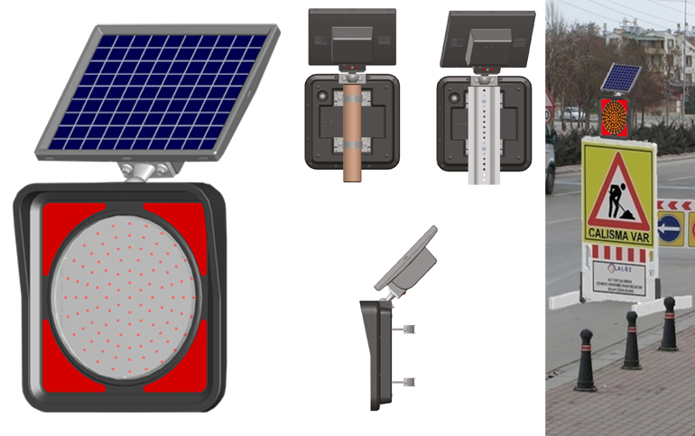 Güneş paneli topuz şeklindeki metal mafsal sayesinde kendi ekseninde 360 derece ve öne-arkaya ve sağa sola 45 derece yatabilme özelliğine sahjptir