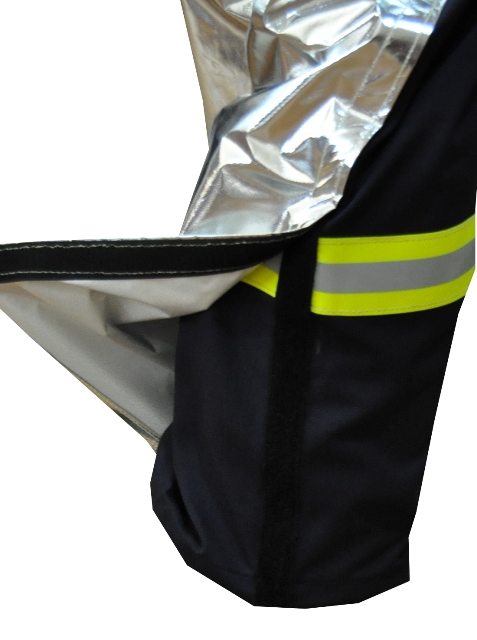 Alüminize kumaşın zarar görmesi ve delinmesi durumunda, elbiseyi değiştirmeye gerek kalmaksızın üzerindeki takviye değiştirilebilir.