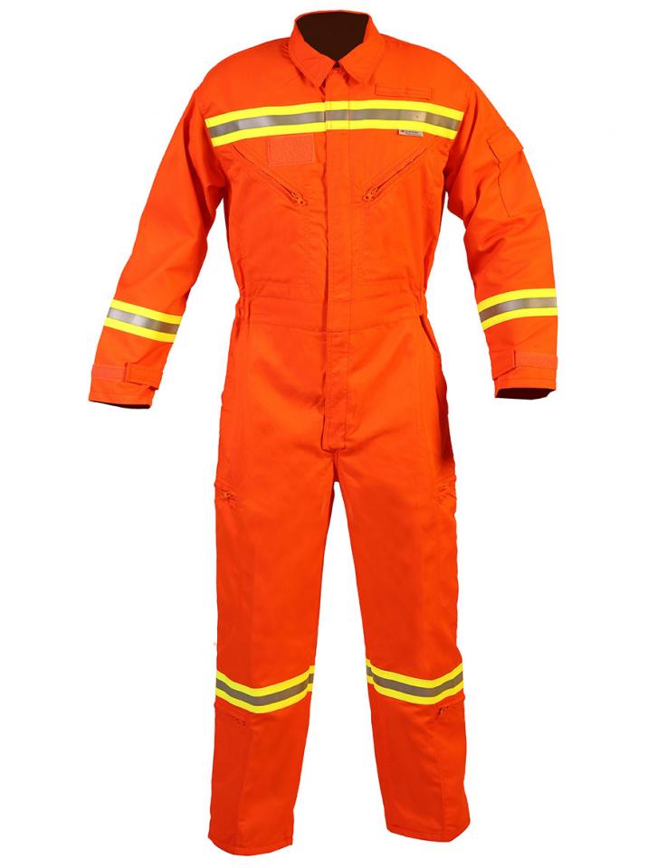 - Göğüs, sırt, kol ve pantolonda tek sıra yatay 3M® Scotchlite 5 cm alev almaz reflektif (sarı-gri-sarı veya kırmızı-gri-kırmızı)